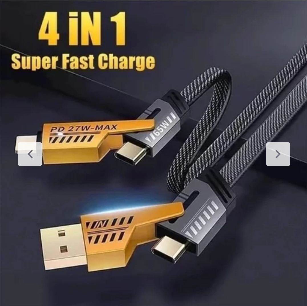 کابل شارژ چهار کاره سر فلزی کنفی (فست شارژ 65 وات) سر سوکت نارنجی،به طول 1 متر