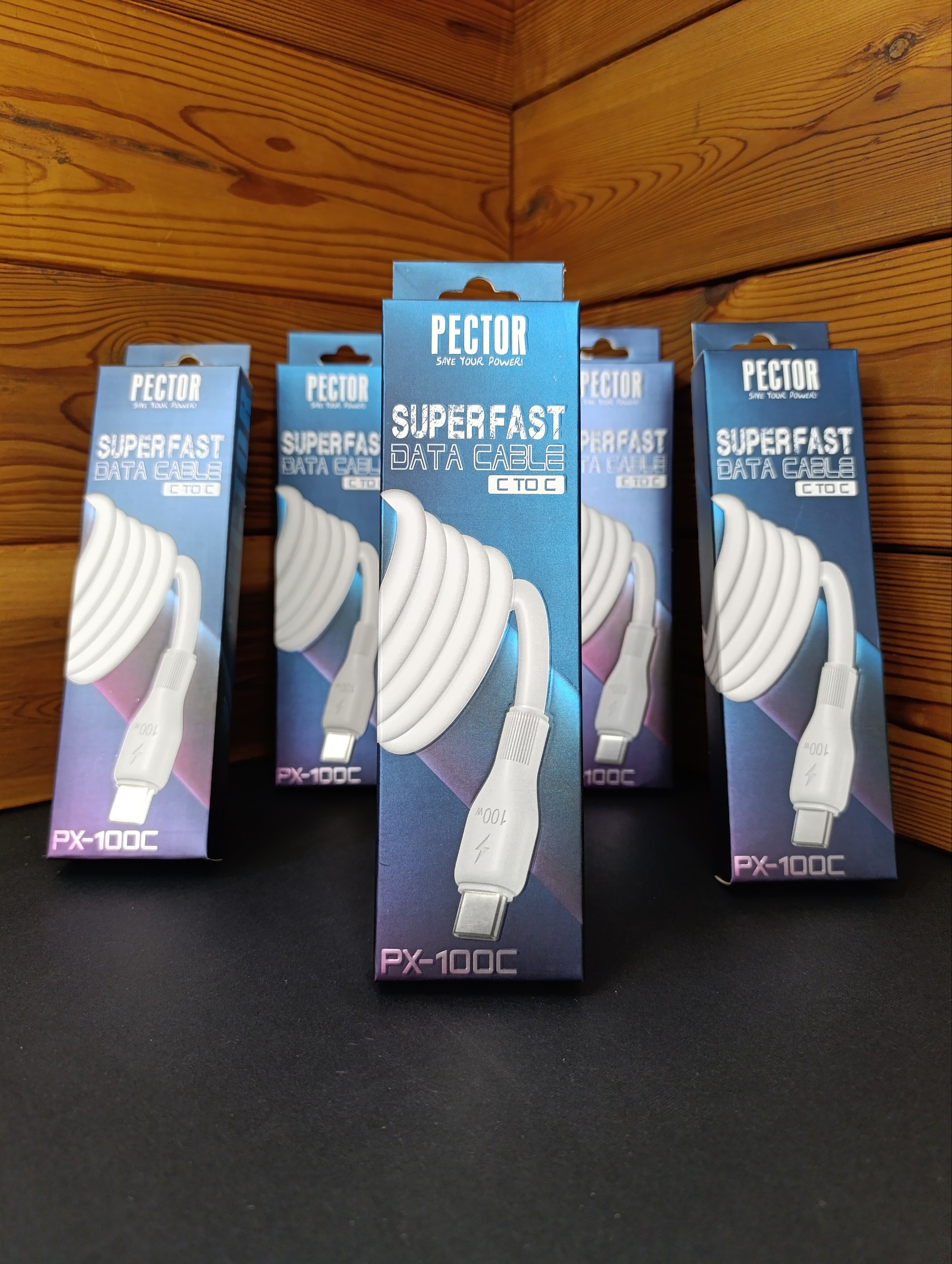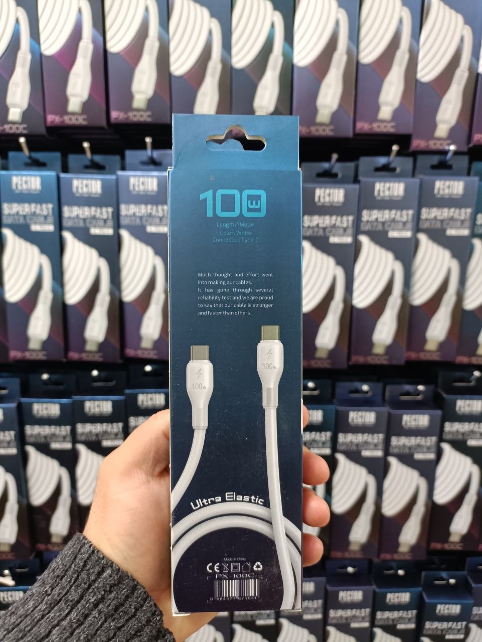 ⭐️کابل شارژ اورجینال پکتور PECTOR 100Wدو سر تایپ C پکدار PX-100