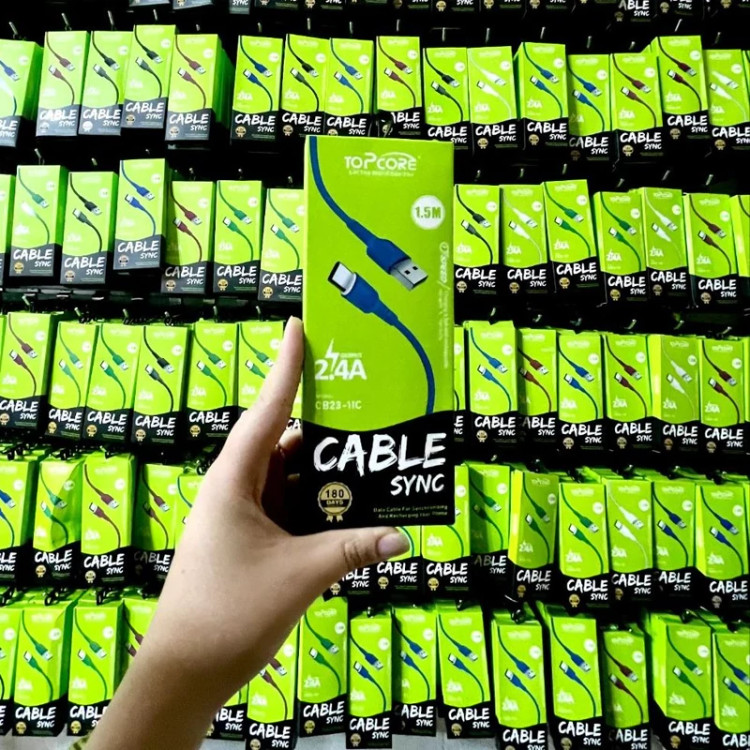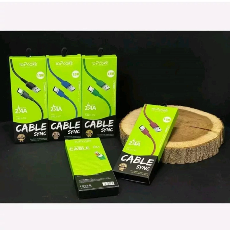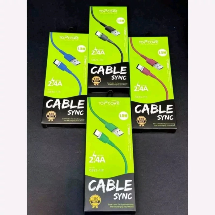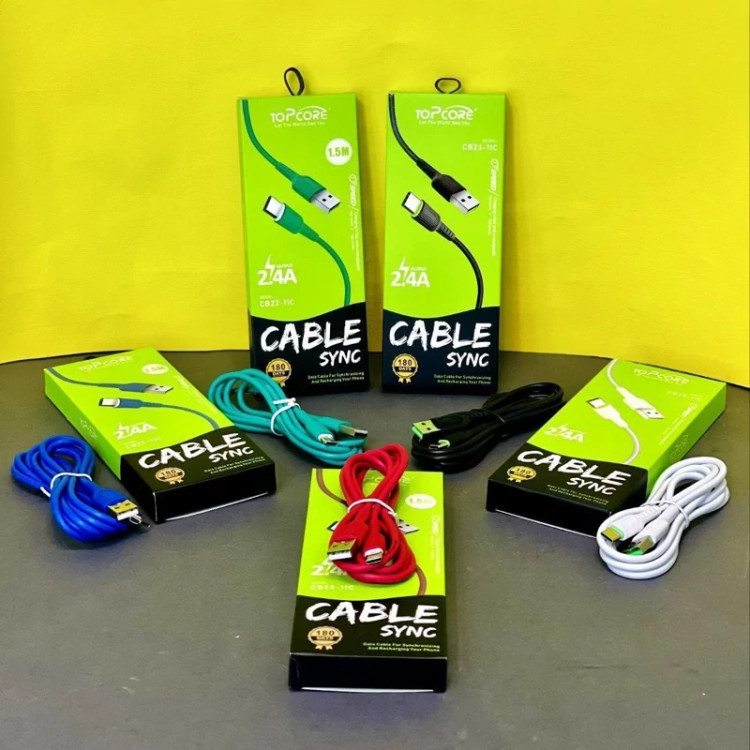 کابل شارژ 1.5متری تایپ سی topcore مدل cb23-11c فست شارژ کیفیت عالی