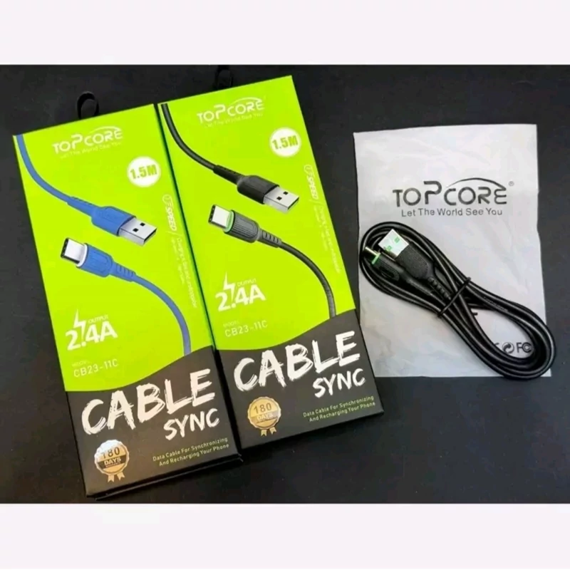 کابل شارژ 1.5متری تایپ سی topcore مدل cb23-11c فست شارژ کیفیت عالی