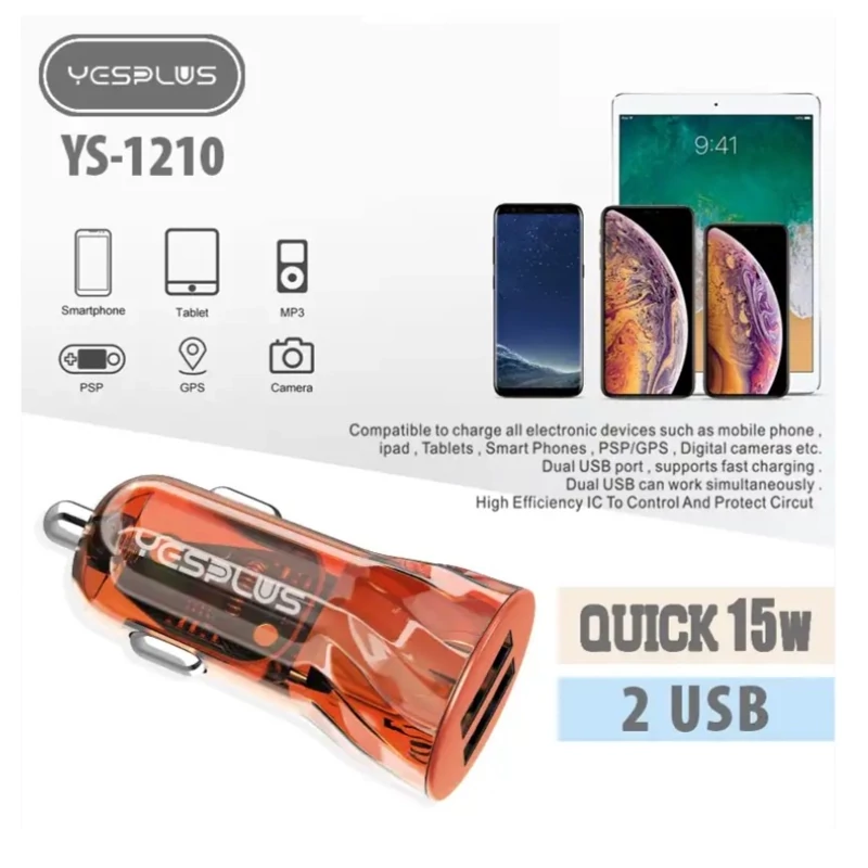 شارژر فندکی شیشه ای Yesplus مدل 1210